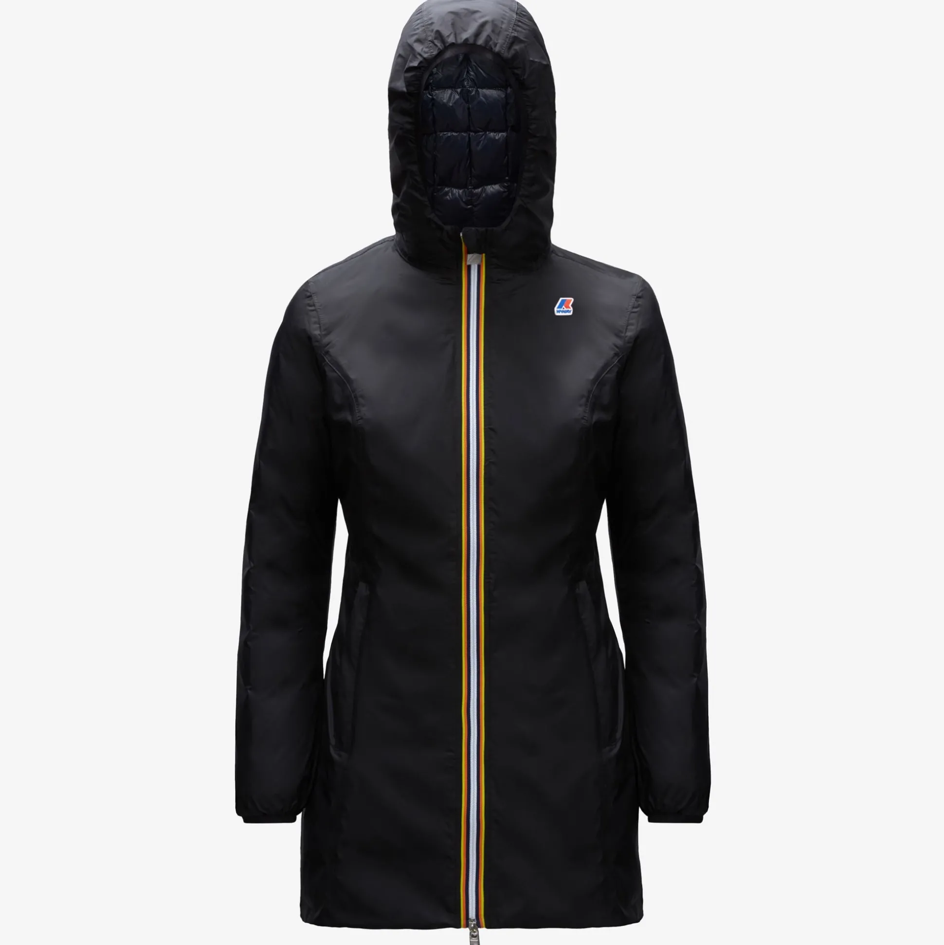 La giacca a tre quarti da donna Denise è la proposta K-Way per le giornate di freddo più intenso. Il modello reversibile consente due opzioni di utilizzo perchè combina un lato in tessuto tecnico liscio e l’altro in nylon trapuntato dal colore a contrasto. L’interno è imbottito in vera piuma che offre calore e leggerezza.