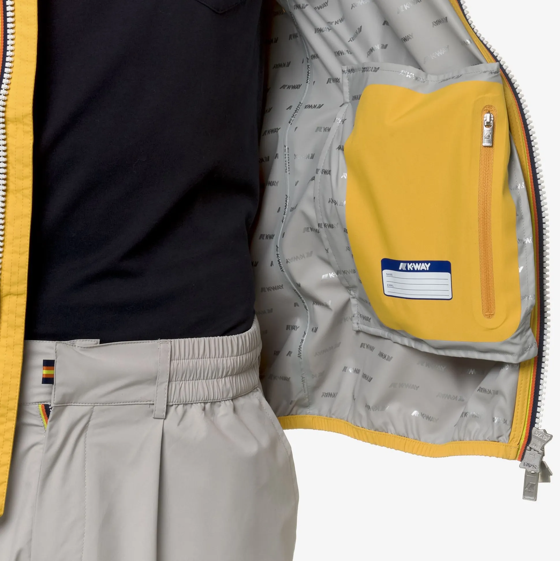 Jack è una giacca corta da uomo ideale per le mezze stagioni e con vestibilità slim, realizzata in tessuto tecnico elasticizzato e riciclato, che segue i movimenti e protegge dal vento e dalla pioggia fino a 5000 colonne d’acqua. L’interno è foderato con una membrana isolante decorata con lettering K-Way stampato all over in tonalità argento. Le tasche laterali con zip, il cappuccio avvolgente, i polsini e i bordi con inserti elastici sono dettagli funzionali che garantiscono aderenza e una vestibilità comoda e veloce.