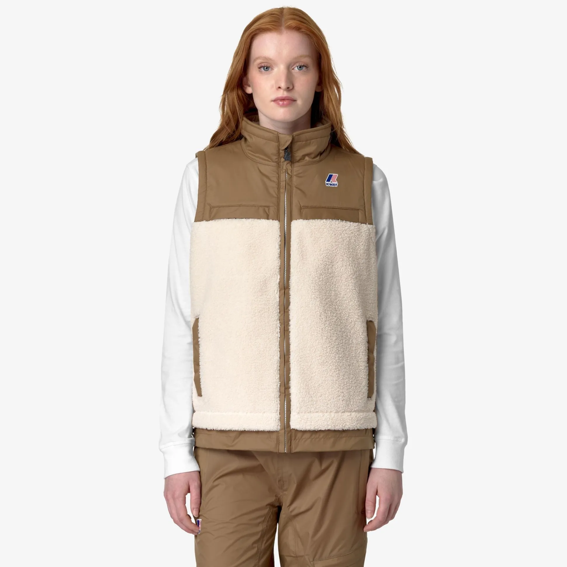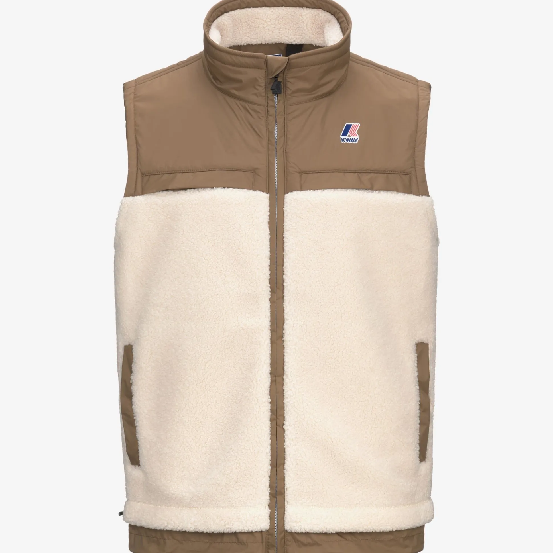 Jile è un gilet antivento dal look pratico e sportivo, ideale da indossare anche come capo da esterno durante il cambio di stagione e i primi freddi. Il modello, con vestibilità regolare e chiusura a zip, è realizzato in tessuto sherpa intervallato da applicazioni in nylon che attribuiscono un tocco tecnico al look incrementando la resistenza del capo. Questo gilet presenta collo alto, fondo regolabile, 2 tasche laterali e un taschino verticale sul petto.