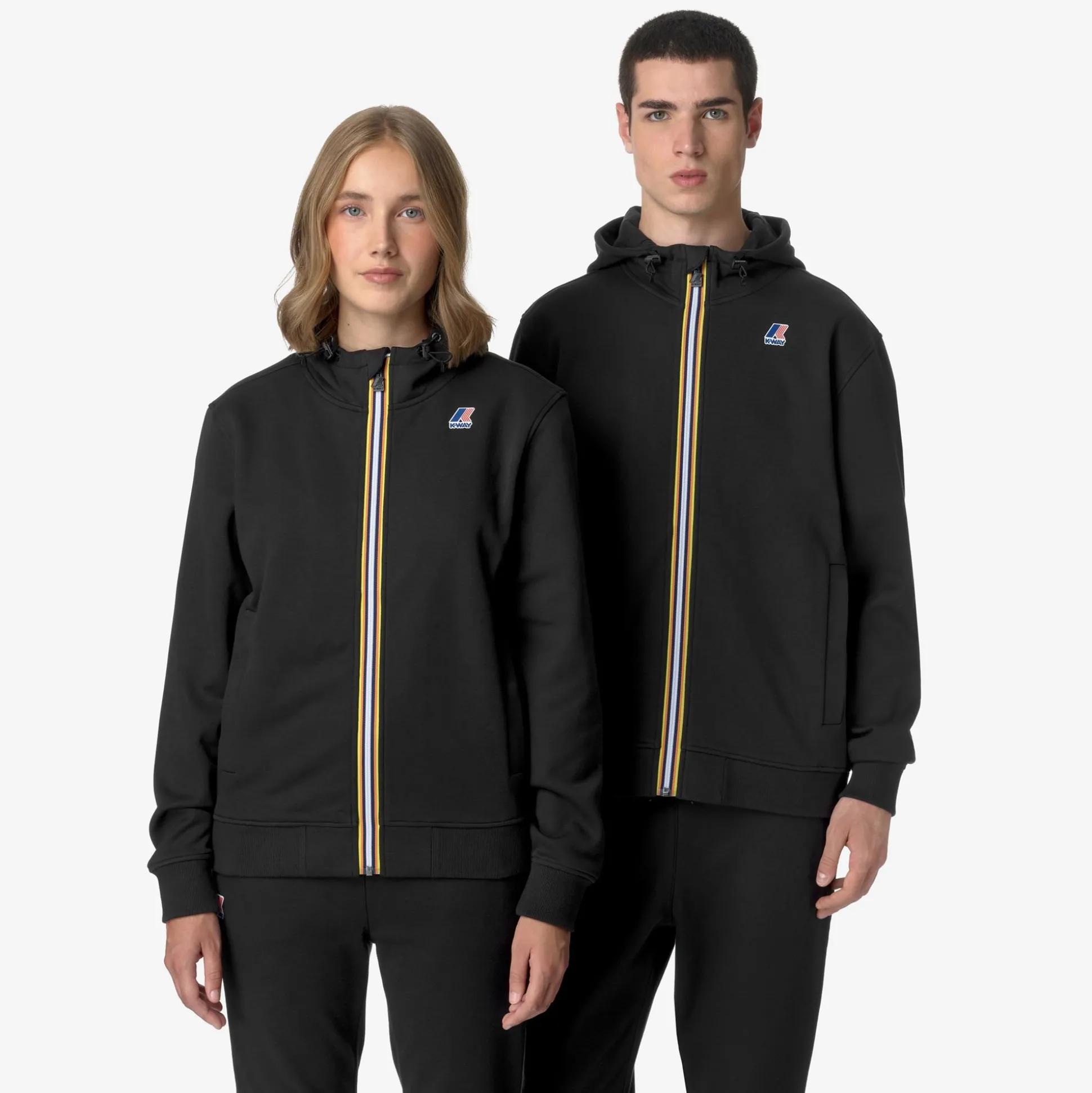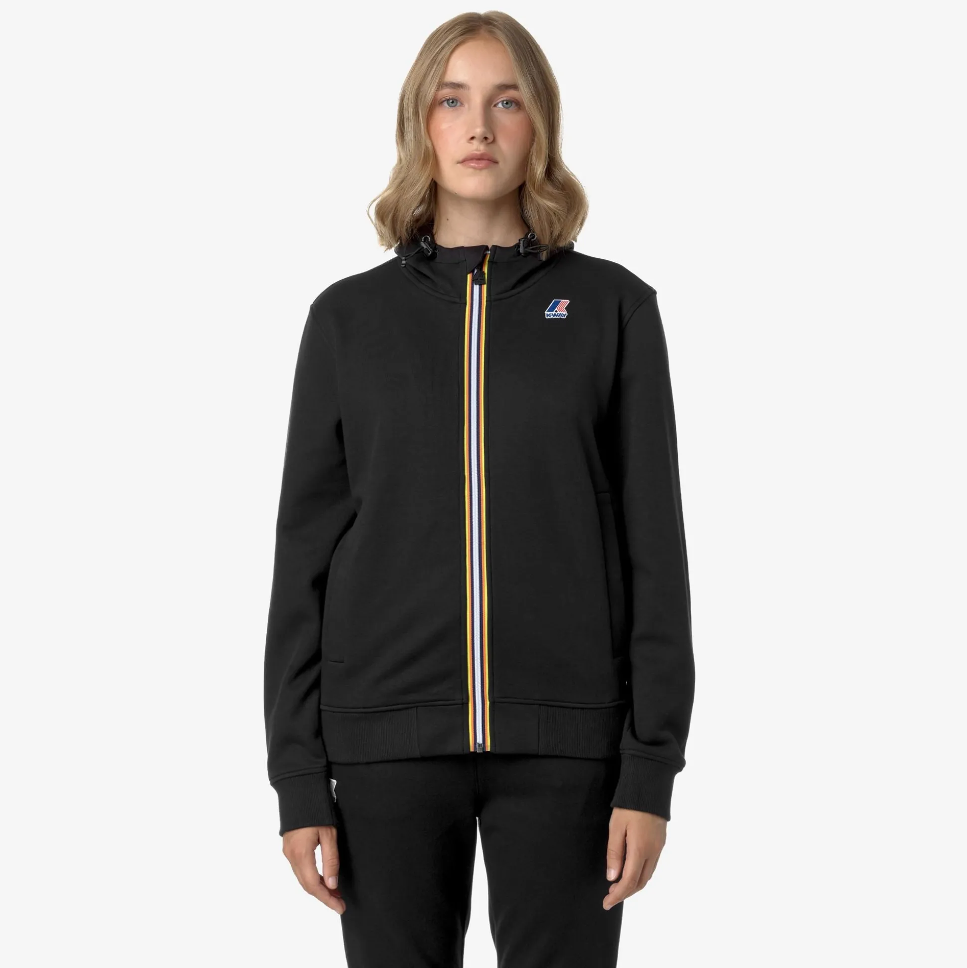 Arroux è una felpa unisex dal look sportivo, pensata per uno stile di vita dinamico in città, in viaggio o durante l’attività fisica. Realizzata in felpa di misto cotone estremamente leggera e con interno morbido e piacevole a contatto con la pelle, questo modello con vestibilità regolare è dotato di fondo e polsini in costina e si caratterizza per la chiusura a zip decorata con il classico tape multicolor K-Way, il cappuccio regolabile e le pratiche tasche con bottone a pressione sui fianchi.