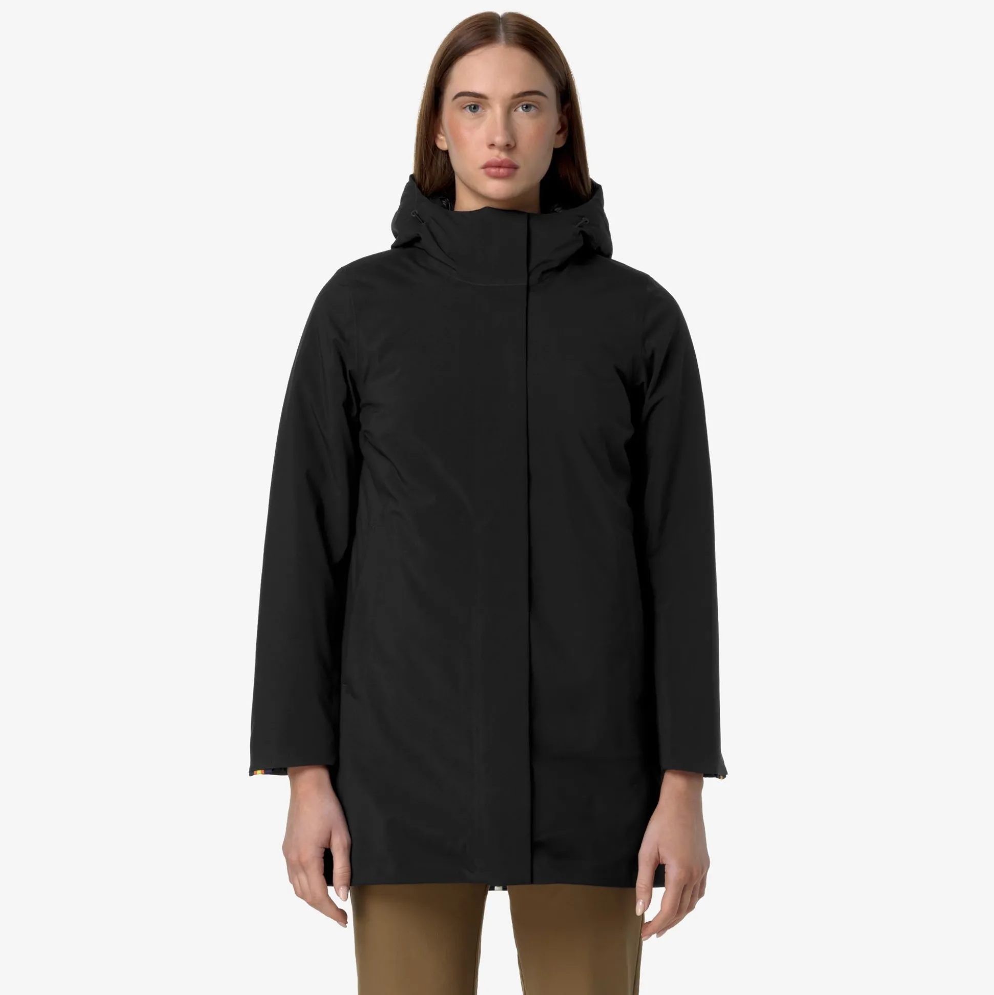 Mathiel è una giacca a tre quarti da donna, ideale per l’inverno, che interpreta i look quotidiani con uno stile cittadino e linee pulite grazie all’assenza di loghi sul fronte. Questa giacca, dalla vestibilità accogliente con chiusura a zip e cappuccio avvolgente regolabile, presenta un guscio in tessuto tecnico a tre strati con nylon esterno, membrana intermedia e maglina con cuciture interne termonastrate dal colore a contrasto. La calda imbottitura in ovatta fluttuante e una confortevole trapuntatura interna garantiscono una protezione ottimale dal freddo più intenso. Il modello ha le tasche a filetto e il dettaglio del tape K-Way sul polsino.