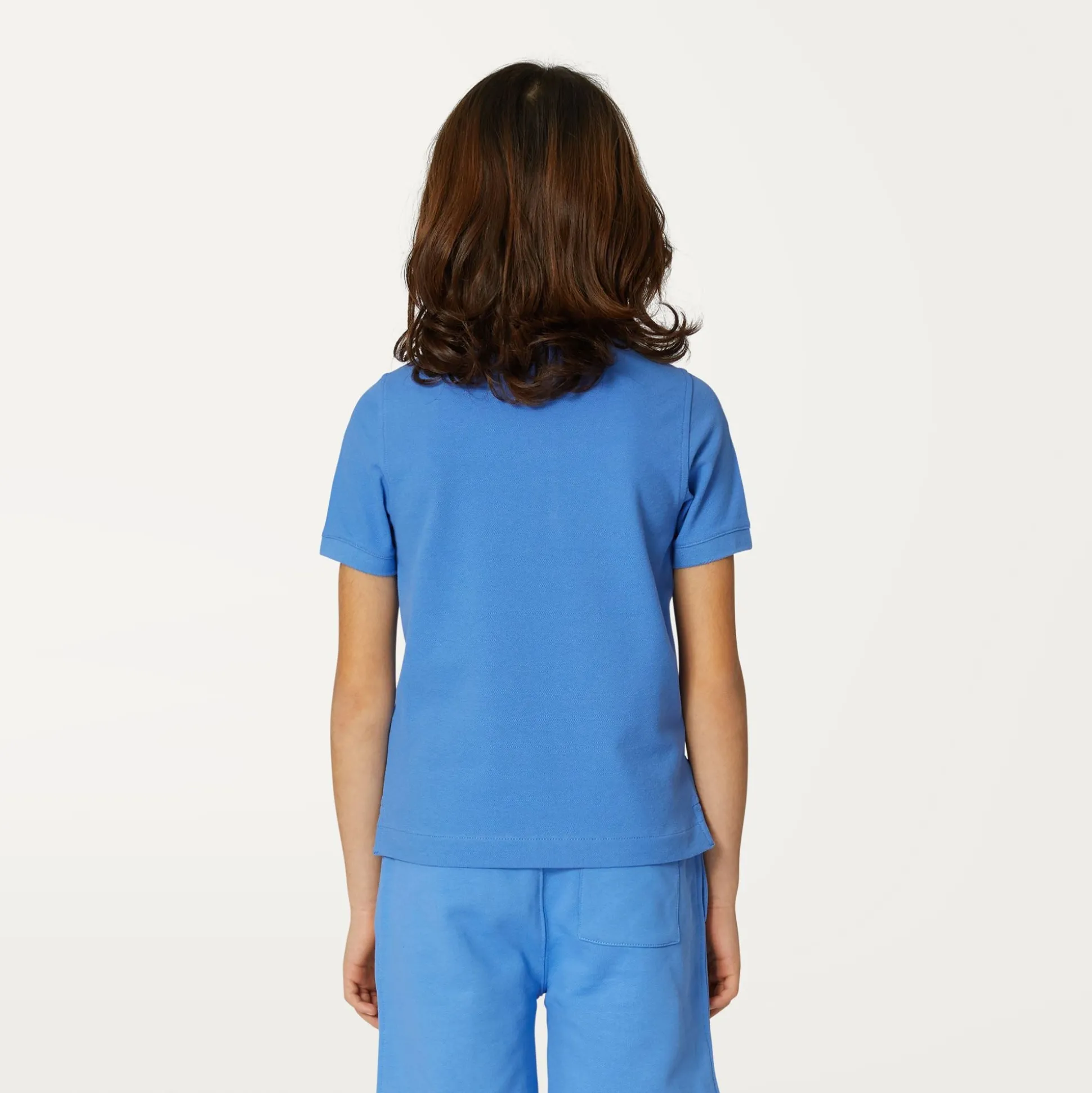 Jude è la polo da bambino realizzata in piquet di cotone stretch morbido ed estremamente flessibile. Si caratterizza per il bordo del colletto con profilo a righe ispirate al tape K-Way e gli spacchetti sui lati che assecondano i movimenti.