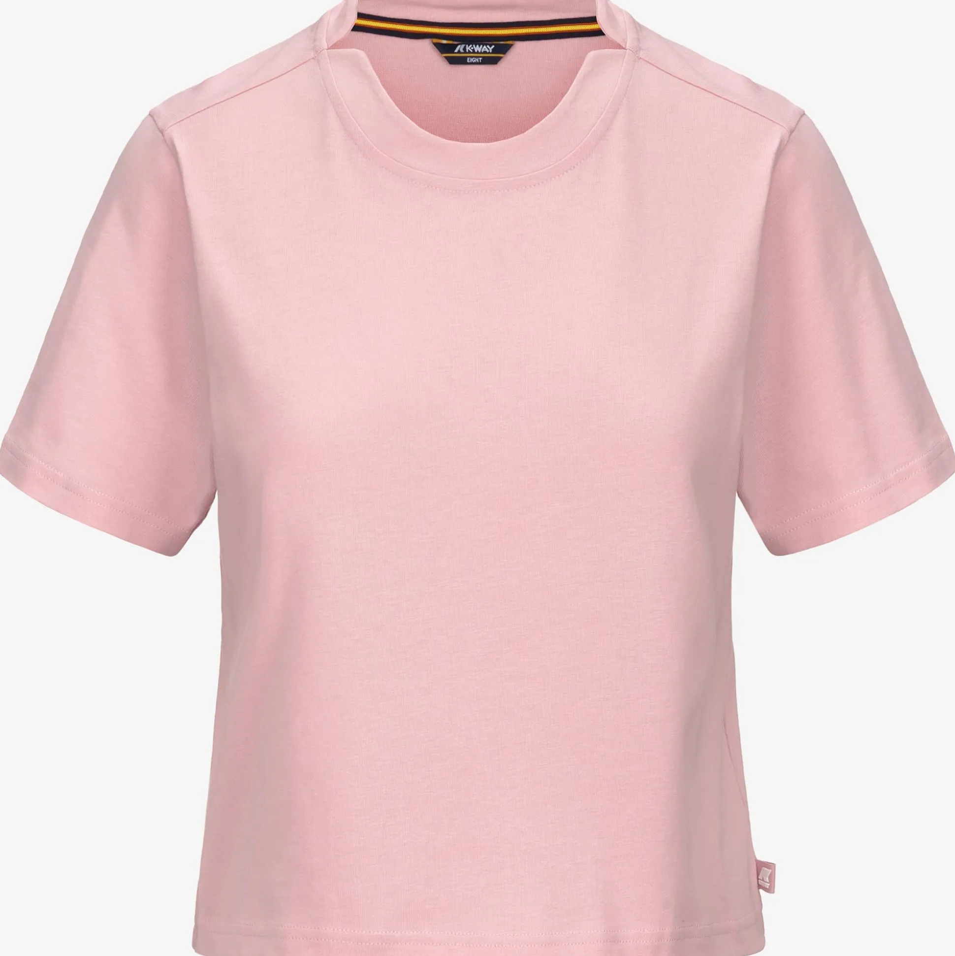 Amilly è una t-shirt girocollo da donna realizzata in morbido jersey di puro cotone, con vestibilità regular e tagli arrotondati sul collo. Il suo look rilassato rende questo capo adatto a occasioni leisure e sportive. L’applicazione della bandierina tono su tono con logo bianco K-Way aggiunge un dettaglio grafico discreto.
