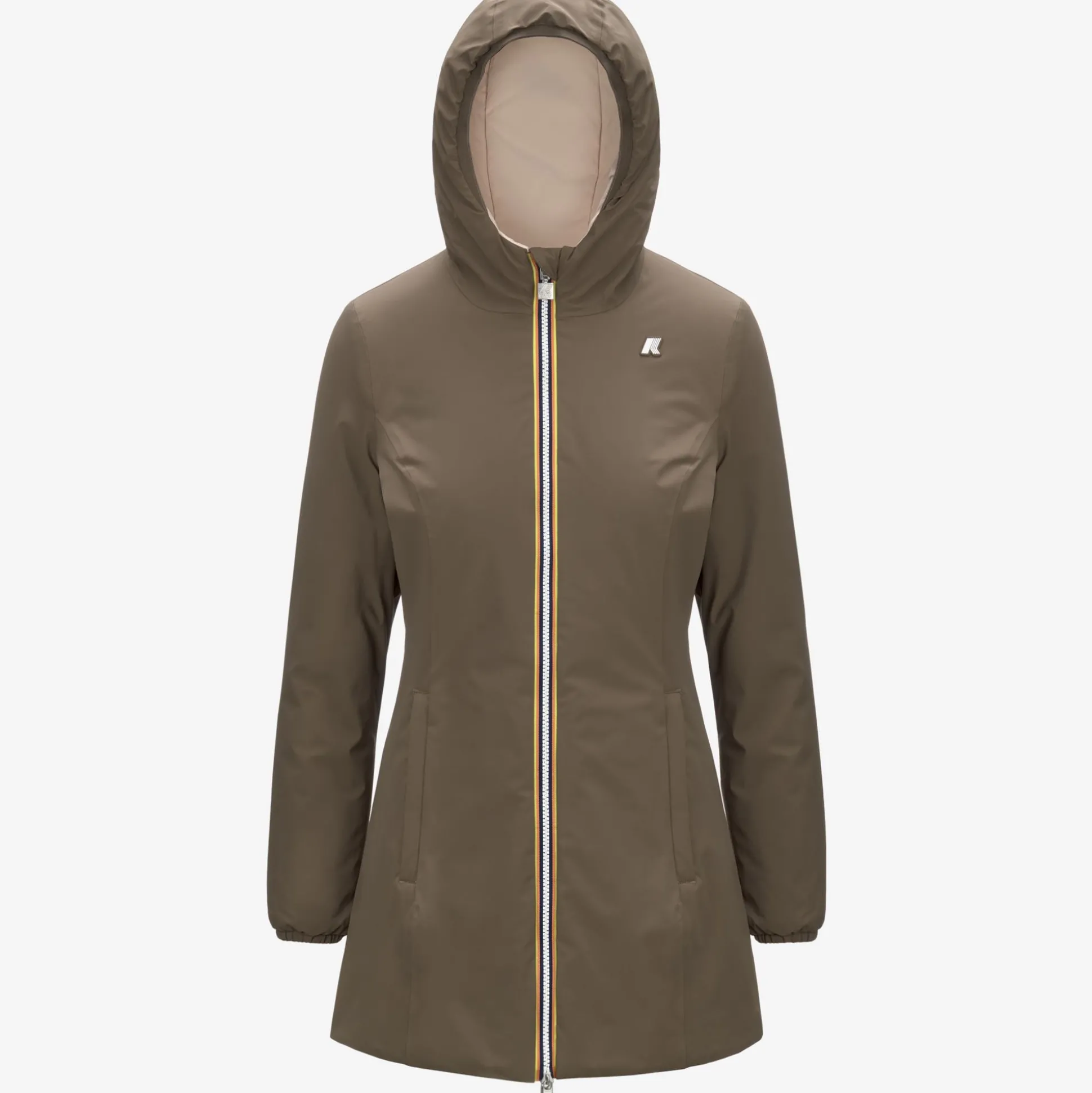 Denise è la giacca da donna con lunghezza a tre quarti che reinterpreta l’ispirazione funzionale K-Way in chiave femminile. Il modello combina un lato in poliestere elasticizzato impermeabile tinta unita e un lato in poliestere antivento dal colore a contrasto. L’imbottitura in ovatta offre un grado di calore medio, ideale per la mezza stagione, mentre le cuciture termonastrate isolano dal freddo e offrono maggiore comfort durante l’attività outdoor.