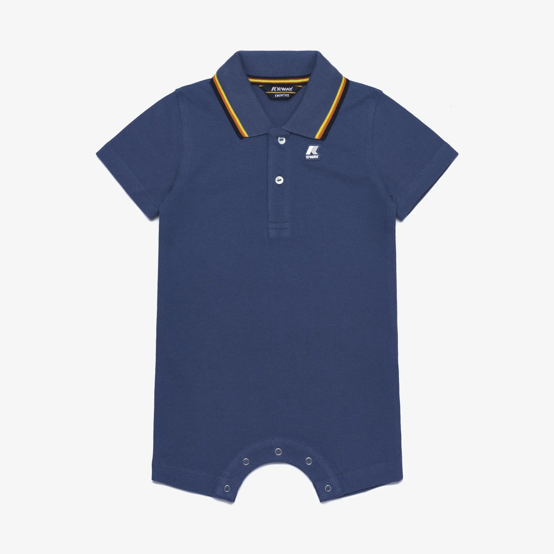 La tutina Dottie dalla linea d’ispirazione polo è la proposta K-Way per i più piccoli. Realizzato in piquet di cotone stretch, il modello si caratterizza per il bordo del colletto nei colori tipici del brand e la comoda chiusura con bottoni a pressione.