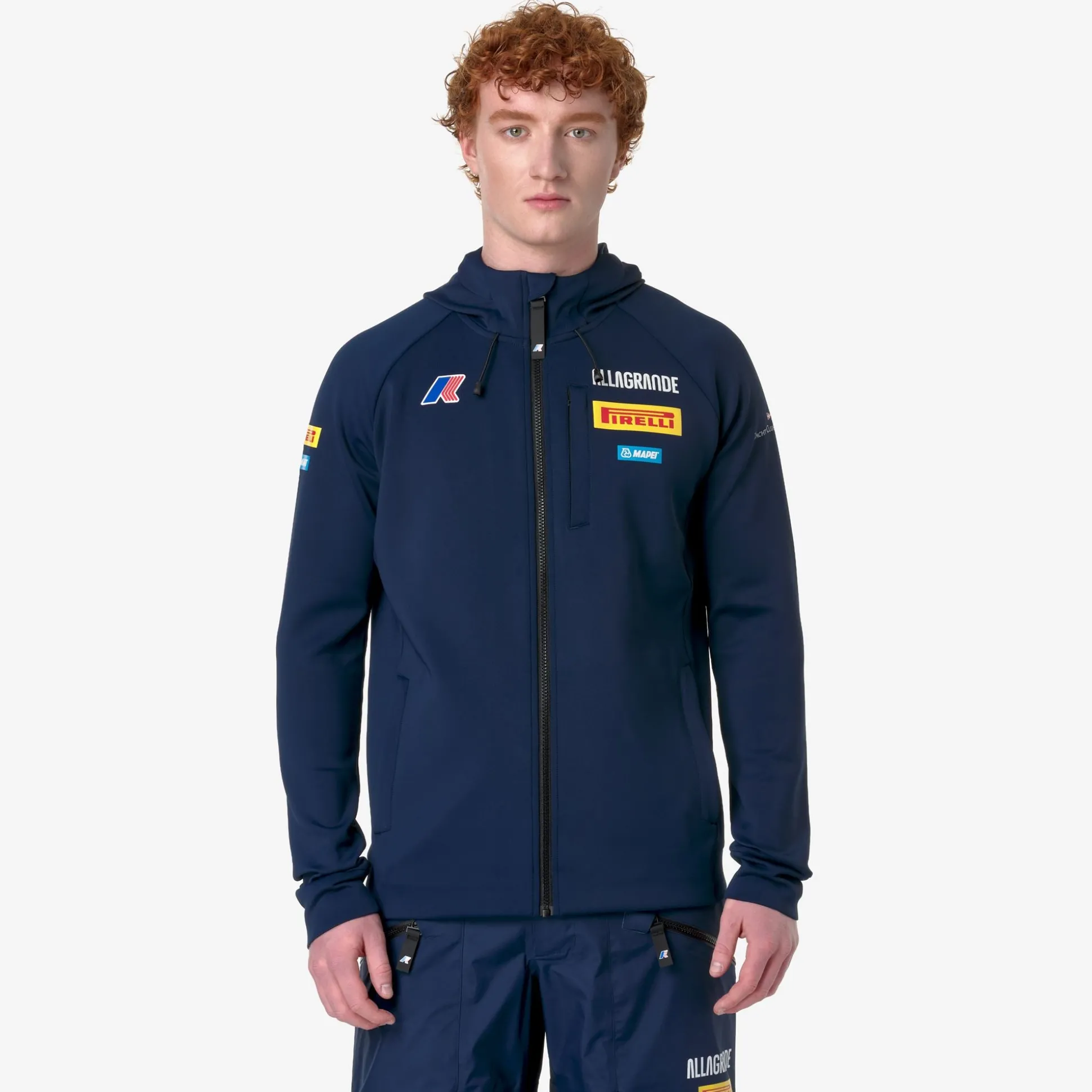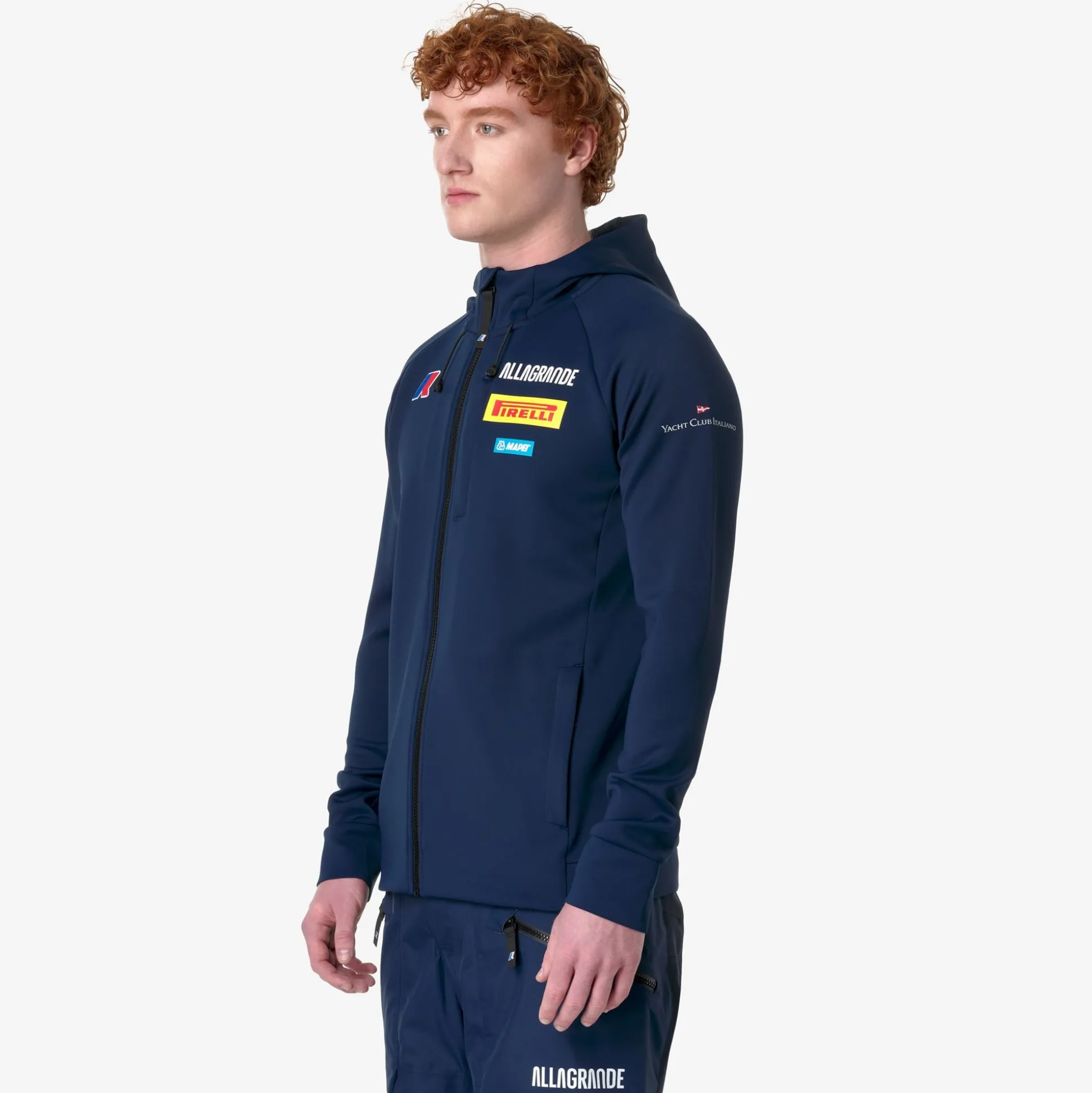 ETAPLES è il fleece da uomo SLIM FIT che celebra la sponsorizzazione di Allagrande Pirelli, imbarcazione Classe 40, guidata dallo skipper Ambrogio Beccaria. Questo capo è ideale per affrontare con stile ogni avventura quotidiana.Realizzato in tessuto interlock pesante elasticizzato, è dotato di un cappuccio regolabile e un’apertura a zip frontale. Presenta tasche laterali e una tasca sul punto cuore. I polsini e il bordo inferiore sono rifiniti in tessuto elasticizzato per garantire comfort e adattabilità.Il design è arricchito da loghi esterni applicati di Allagrande Pirelli e Mapei. Completa il look il logo K-Way in silicone applicato.