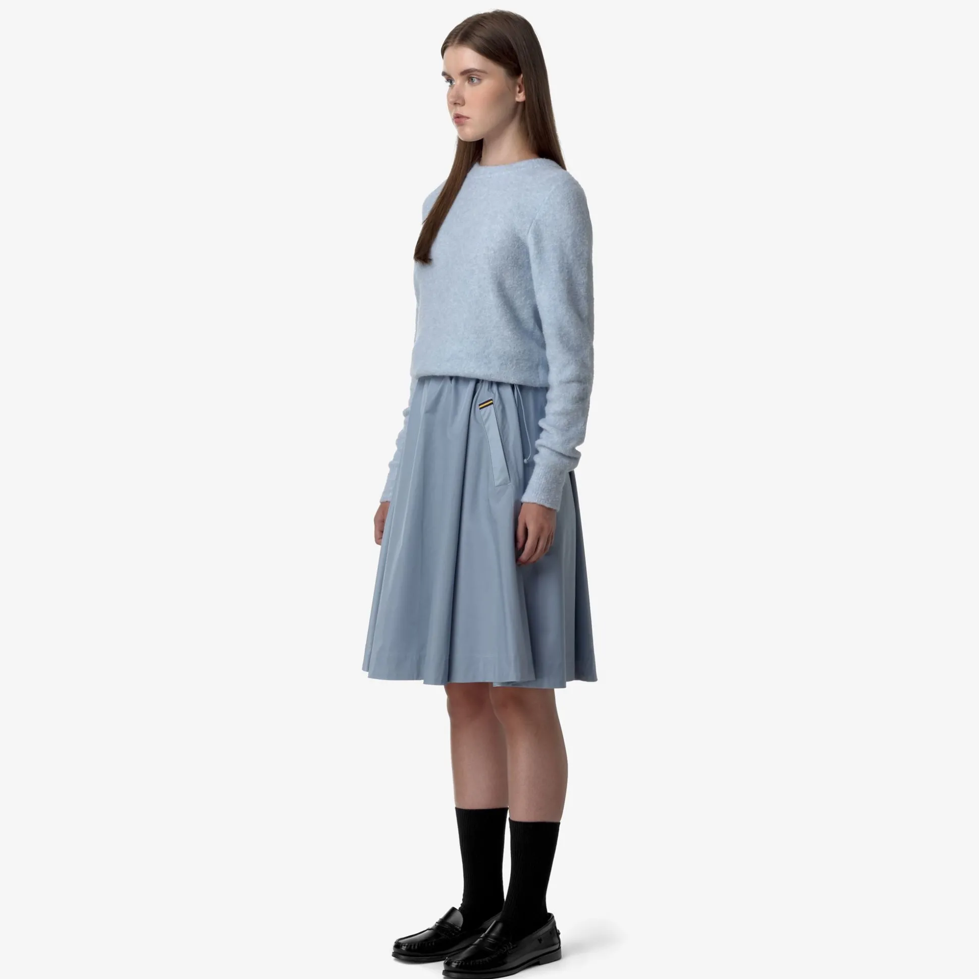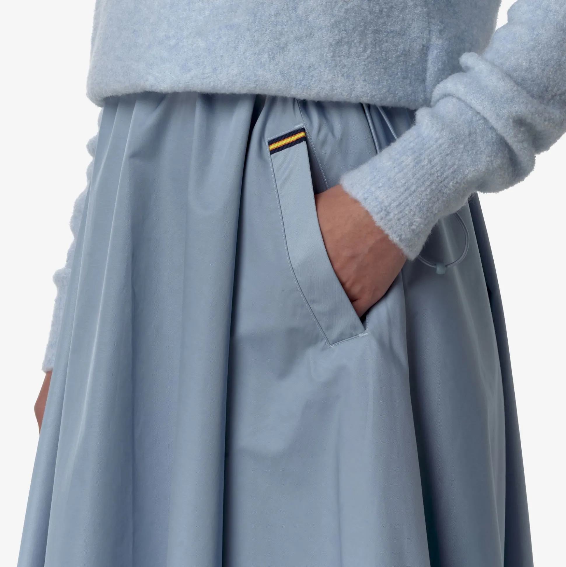 Gaela è una gonna di lunghezza media realizzata in tessuto satinato dalla mano morbida e vellutata. Il modello ha una vestibilità accogliente con vita regolabile e tasche a scomparsa: infinite possibilità di mix and match, per completare gli outfit quotidiani in modo femminile e ricercato.