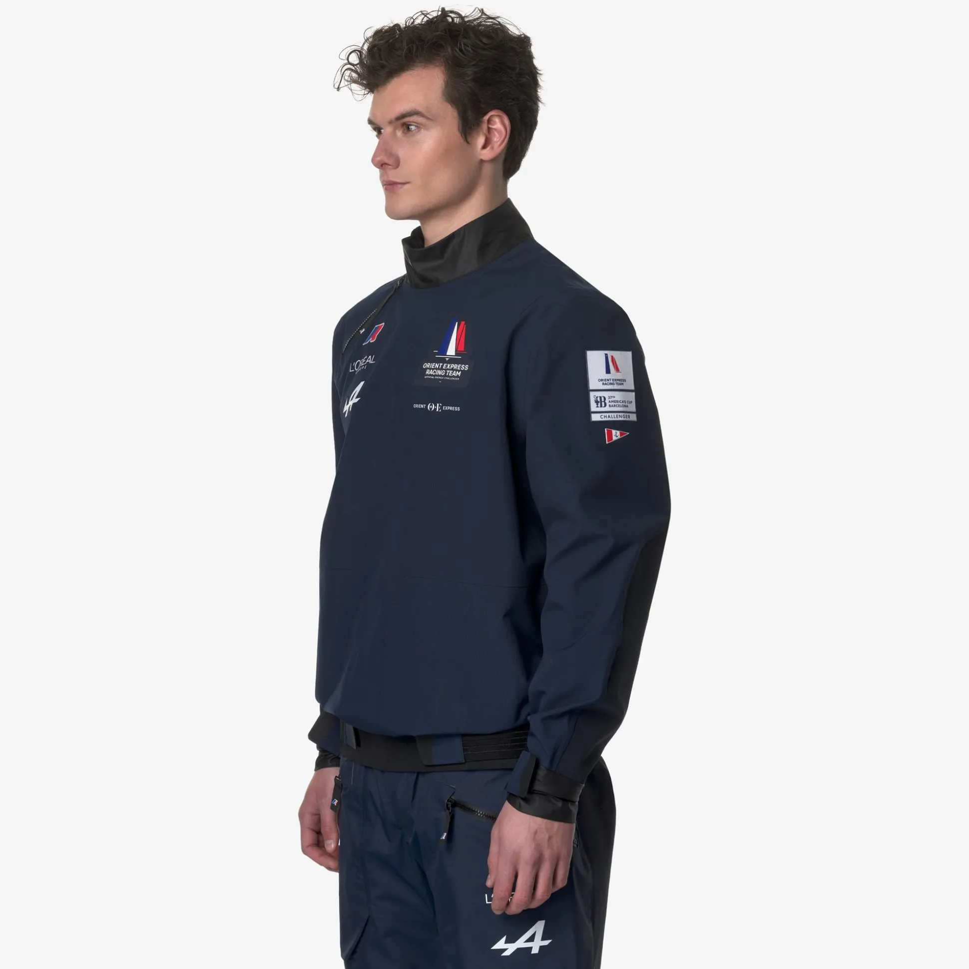 GUIRREC ORIENT EXPRESS TEAM AC è la speciale giacca pull-over REGULAR FIT realizzata da K-Way in collaborazione con l’equipaggio di Orient Express Racing Team, per celebrarne la sponsorizzazione in occasione della 37esima America’s Cup. Una collezione che celebra il legame di K-Way con l’acqua, il vento e il mondo outdoor: stile e tecnicità, sintetizzati per la performance. Le caratteristiche tecniche di questa giacca la rendono adatta a un utilizzo professionale: si tratta della versione utilizzata dai marinai di Orient Express durante le regate dell’America’s Cup. Impermeabile a 30mila colonne d’acqua, resistente al vento e traspirante a 20mila gr/m2/24. Lo strato esterno è realizzato in tessuto mini-ripstop meccanico, con cuciture interne termonastrate. Collo alto regolabile con apertura a mezza zip. Polsini con regolazioni a strappo e tessuto di rinforzo sulle maniche. Il fondo è realizzato in neoprene, con regolazioni a strappo che permettono di adattare perfettamente la giacca al corpo e impedire l’ingresso di acqua. Gancio loop posteriore per asciugatura. Loghi esterni in applicazione di Orient Express, degli sponsor e di America’s Cup. Logo K-Way in silicone applicato. Etichetta interna per nome applicata.