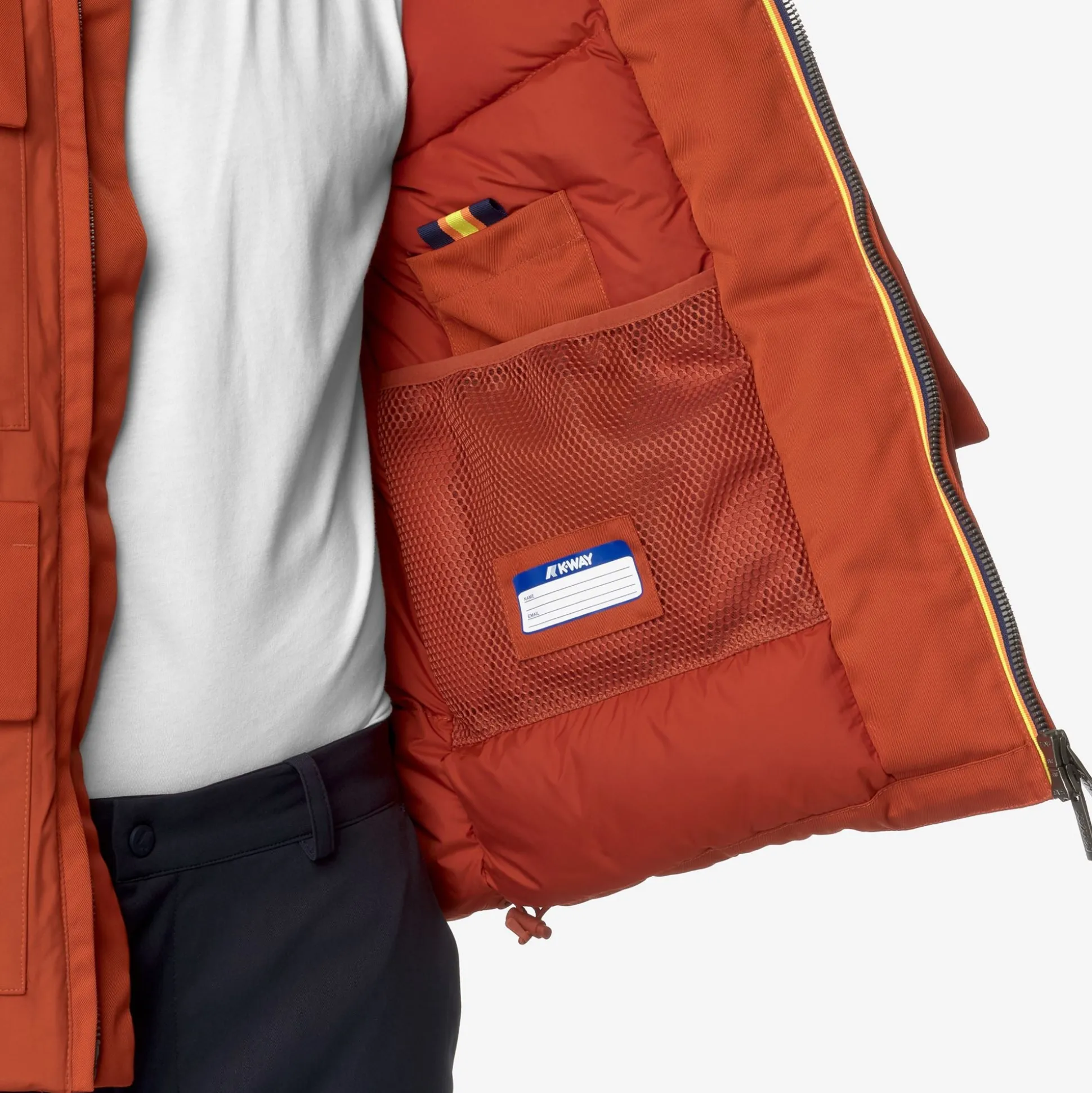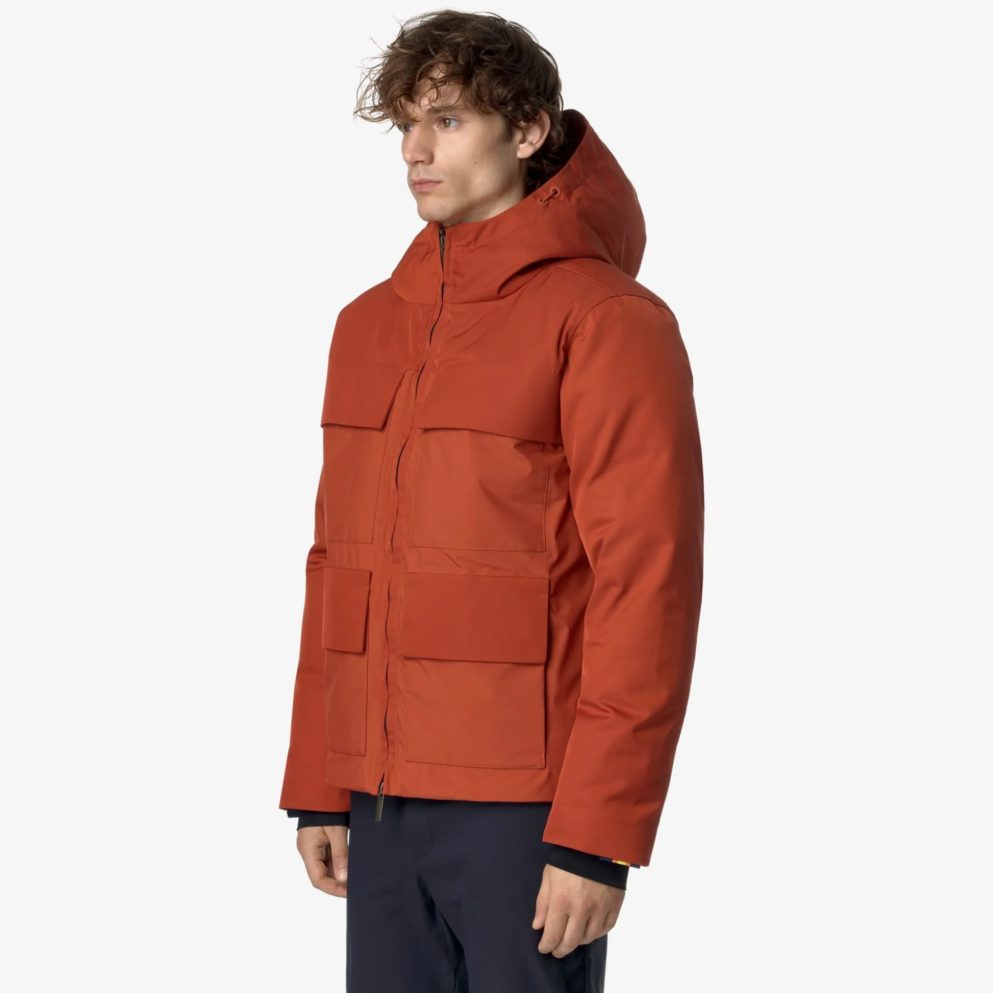 Hodin è una giacca corta da uomo, ideale per l’inverno, dal look dinamico e pulito ideale per la città grazie ai suoi dettagli funzionali e all’assenza di loghi sul fronte. Questa giacca, con vestibilità regolare e chiusura a zip, presenta un esterno in nylon impermeabile combinato con inserti in tessuto a motivo twill e un’imbottitura in piuma Molina che garantisce un grado di calore medio. Il modello ha un cappuccio avvolgente e regolabile, 4 tasche con patta e bottoni a pressione e il dettaglio del tape K-Way sul polsino.