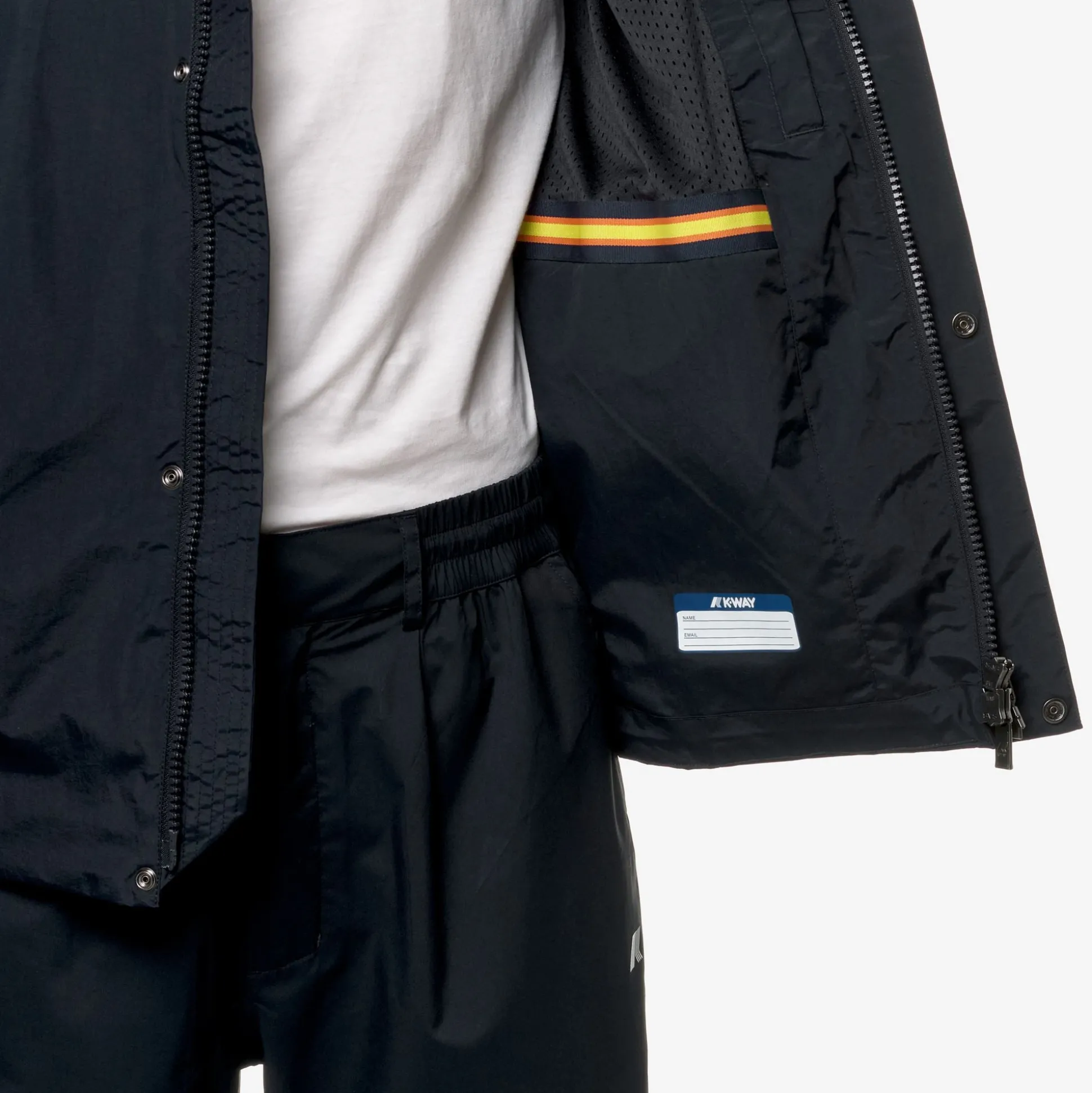 Jack è una giacca corta da uomo pensata per la stagione primaverile perché combina l’esterno in nylon ottoman dalla mano fresca e croccante con una fodera in rete: entrambi i materiali sono riciclati. All’interno, il capo svela una rifinitura curata in ogni dettaglio con fodera in rete nella parte alta e il nastro multicolor K-Way al centro per un accento distintivo e deciso.