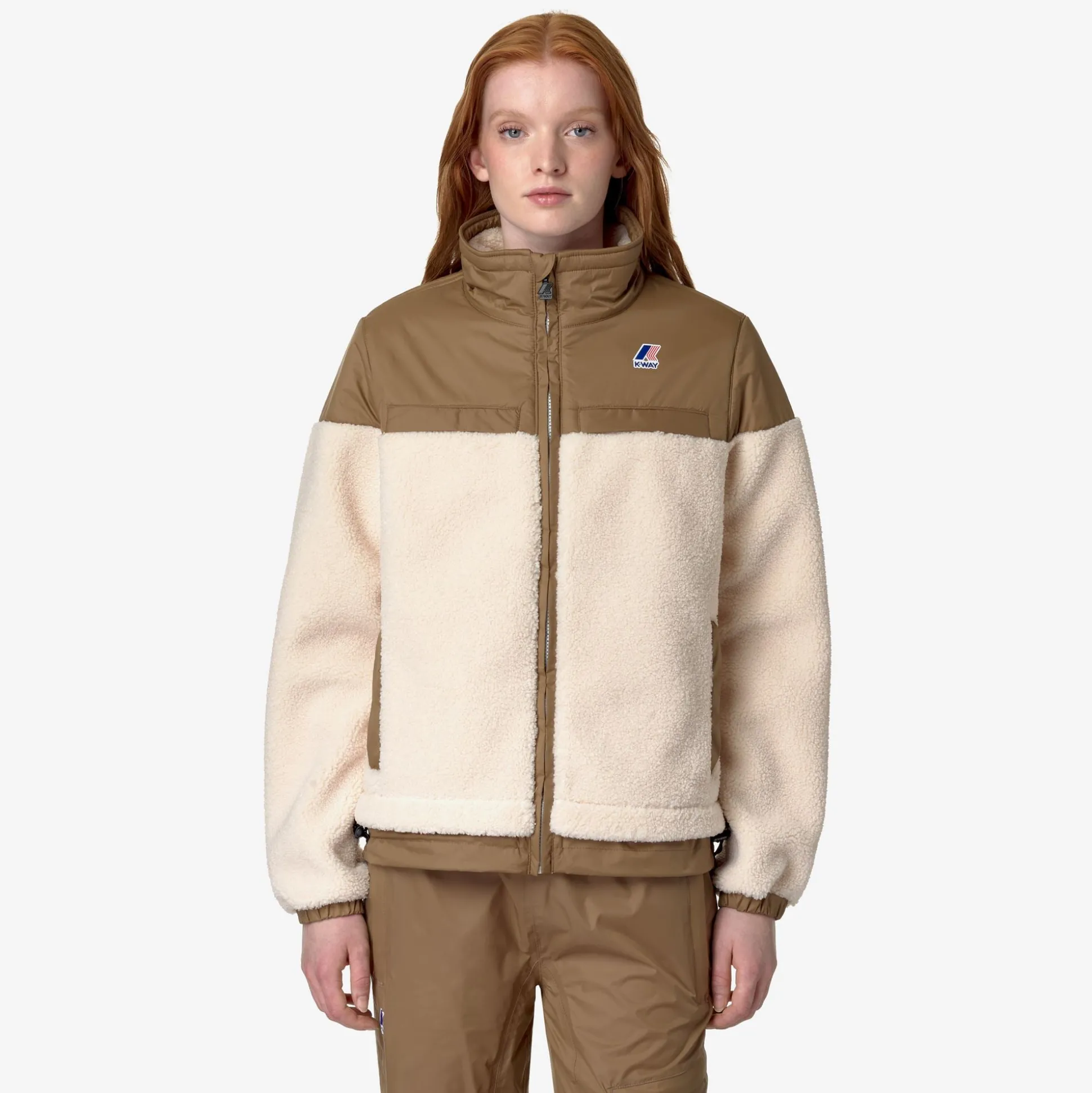 Nersev è una felpa antivento dal look pratico e sportivo, ideale da indossare anche come giacca da esterno durante il cambio di stagione e i primi freddi. Il modello, con vestibilità regolare e chiusura a zip, è realizzato in tessuto sherpa intervallato da applicazioni in nylon che attribuiscono un tocco tecnico al look incrementando la resistenza del capo. Questa felpa presenta collo alto, polsini elastici e fondo regolabile, 2 tasche laterali e un taschino verticale sul petto.