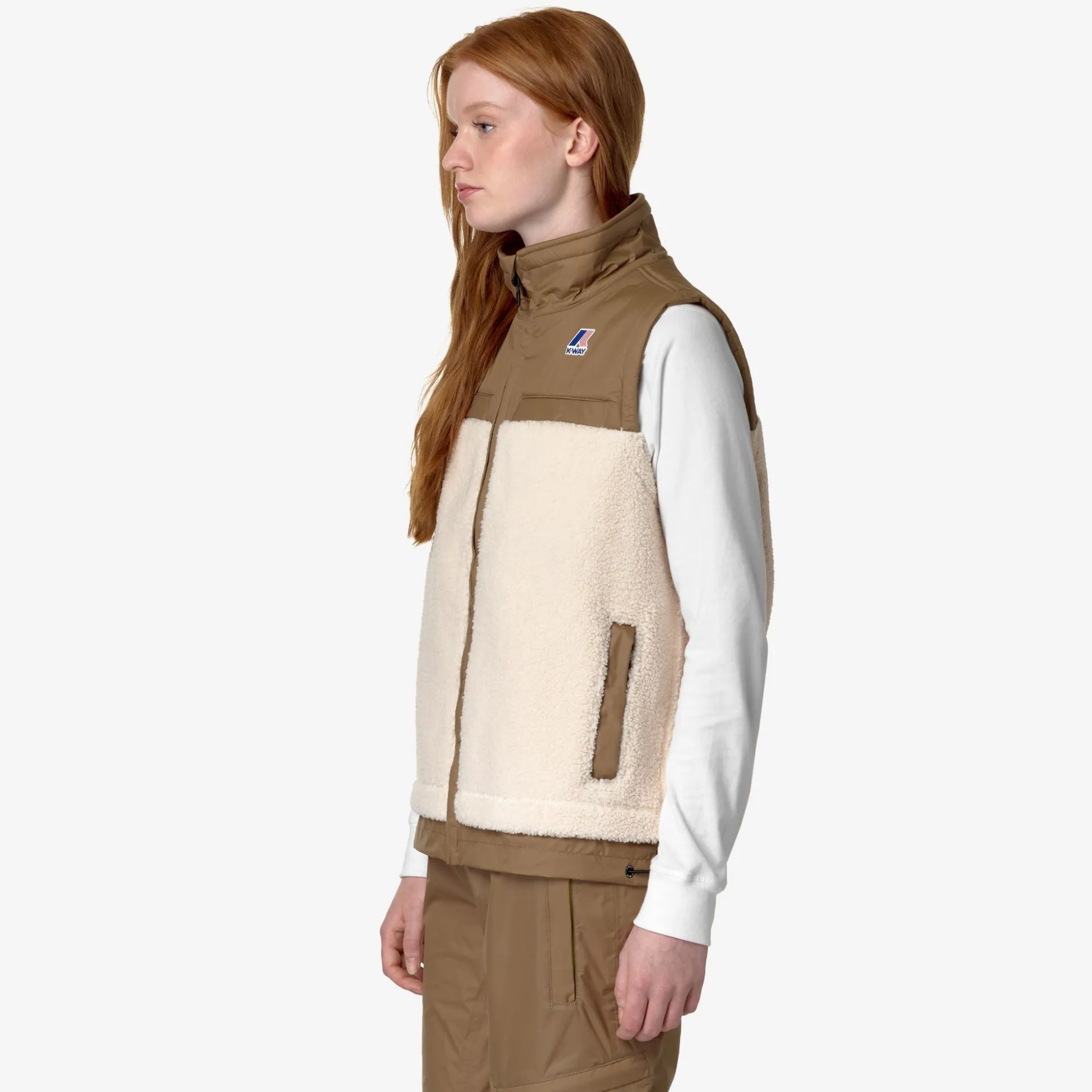 Jile è un gilet antivento dal look pratico e sportivo, ideale da indossare anche come capo da esterno durante il cambio di stagione e i primi freddi. Il modello, con vestibilità regolare e chiusura a zip, è realizzato in tessuto sherpa intervallato da applicazioni in nylon che attribuiscono un tocco tecnico al look incrementando la resistenza del capo. Questo gilet presenta collo alto, fondo regolabile, 2 tasche laterali e un taschino verticale sul petto.