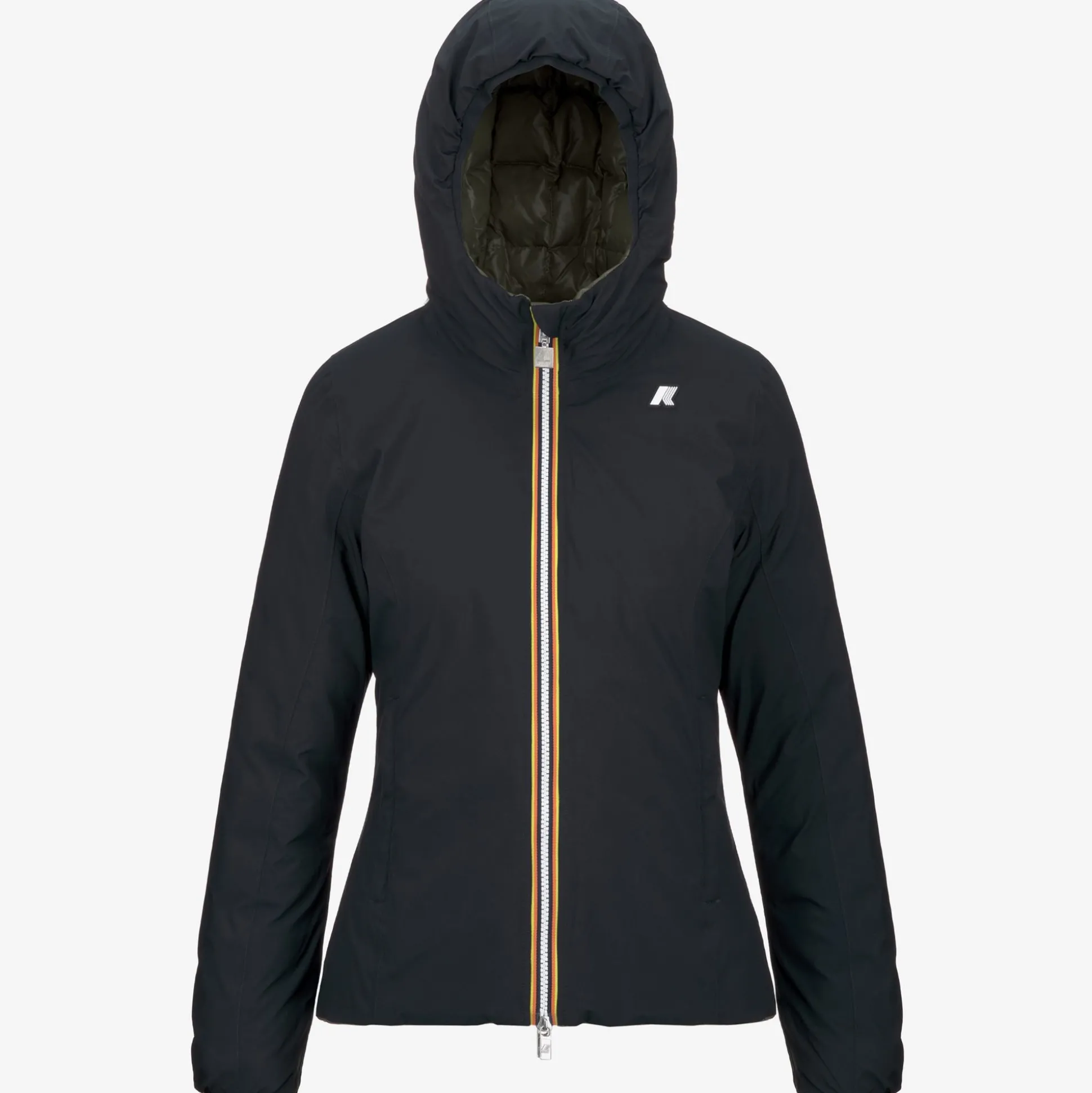 Giacca corta da donna Lily pensata per il clima più rigido perchè imbottita in piuma. Il modello si caratterizza per il design reversibile con un lato in tessuto tecnico liscio e l’altro in nylon trapuntato dal colore a contrasto. Il cappuccio, le tasche, la chiusura con zip e la flap antivento sono dettagli funzionali che proteggono dal freddo.
