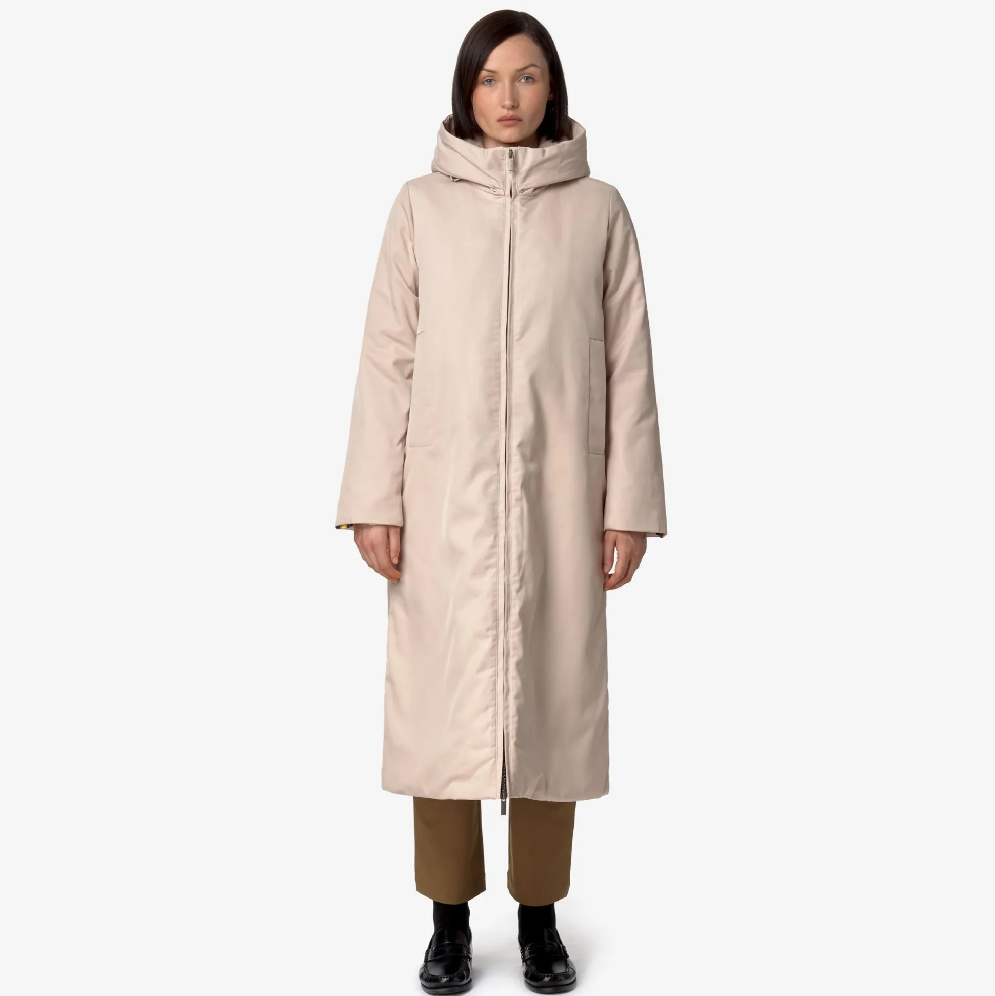 Oller è una giacca full length da donna dal gusto urban, dichiaratamente contemporanea e perfetta per gli spostamenti quotidiani. Questo modello ha un guscio esterno impermeabile, realizzato in tessuto tecnico con motivo twill e presenta un grado di calore medio grazie all’interno in faux-fur che risulta caldo, morbido e avvolgente. Il capo è dotato di chiusura con zip, cappuccio avvolgente e regolabile, tasche laterali e vita regolabile con coulisse; presenta, inoltre, l’elegante dettaglio del tape K-Way sul polsino.