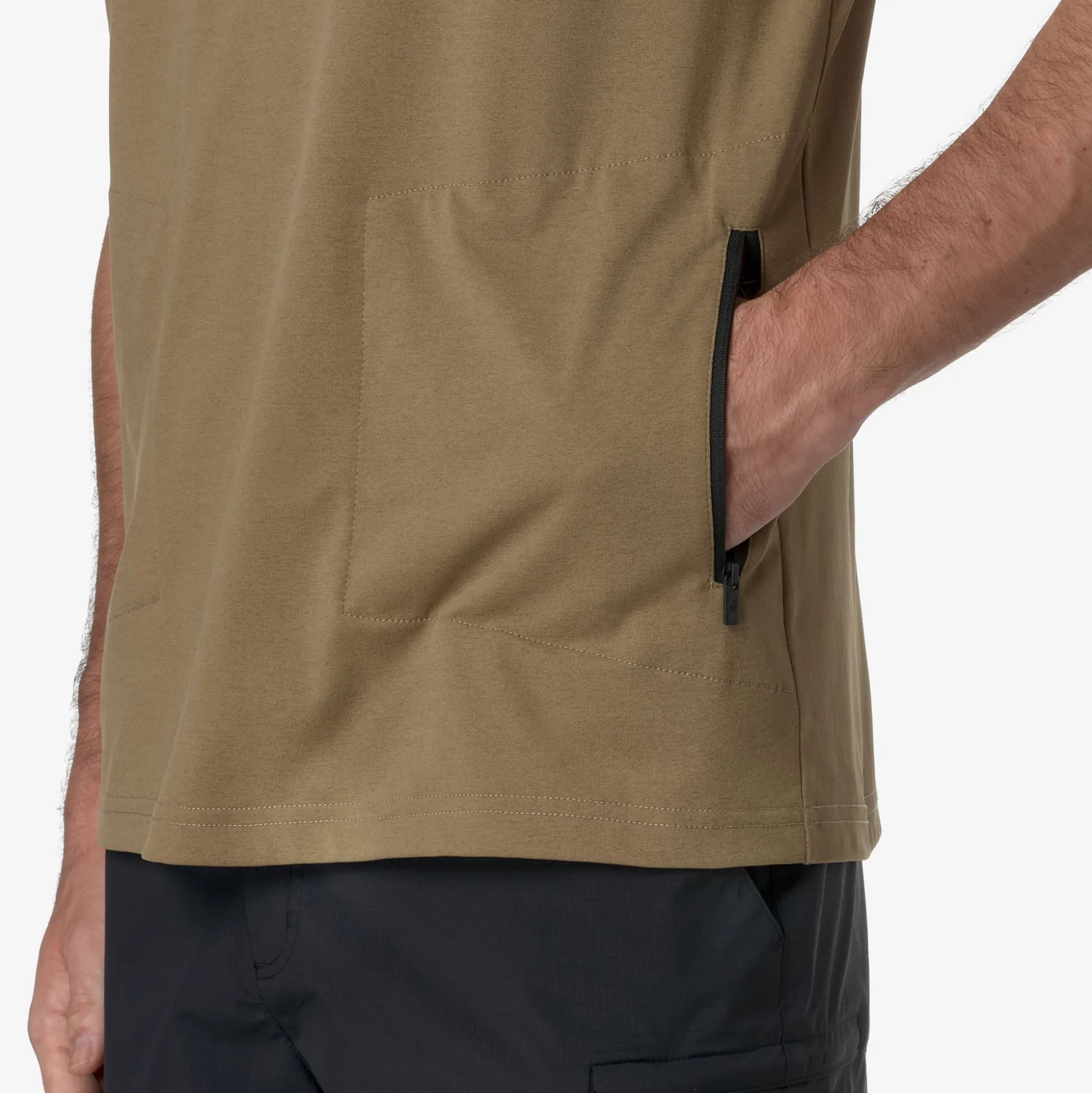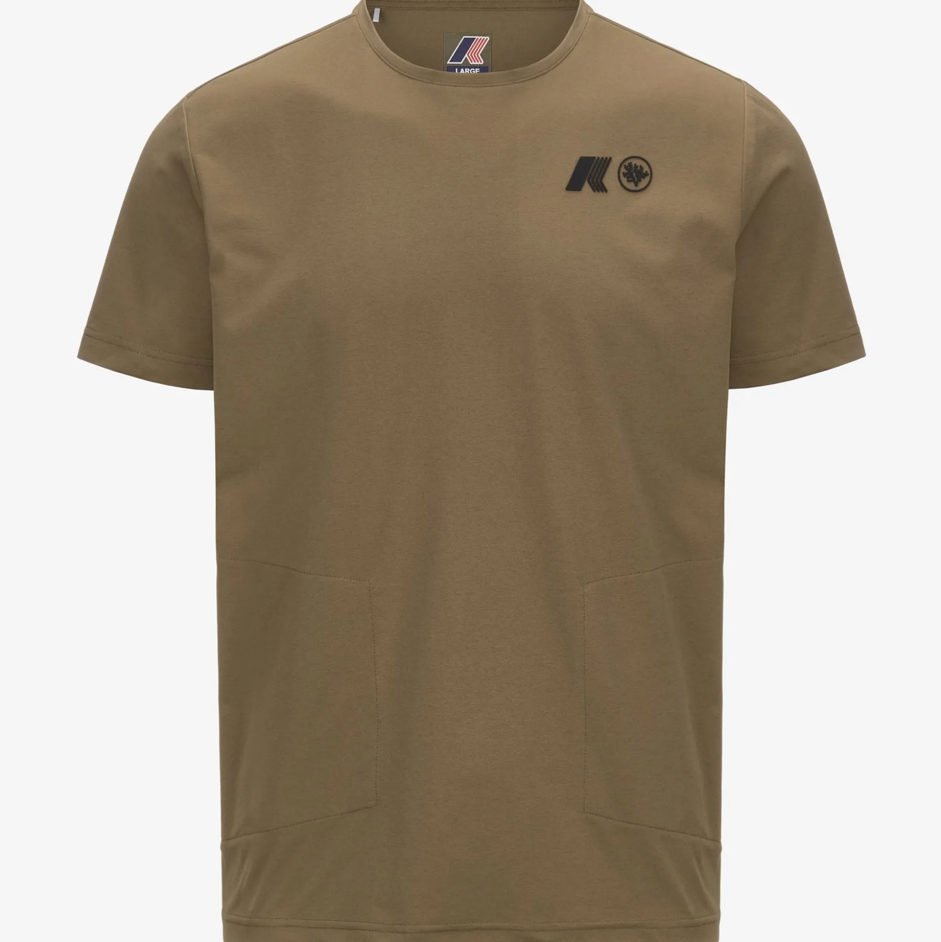 T-shirt a maniche corte impacchettabile, realizzata in jersey di polyestere riciclato. Tasca impacchetabile con sacco tasca in mesh di colore azzurro. Personalizzato con il logo K-WAY x CORAL GARDENERS.